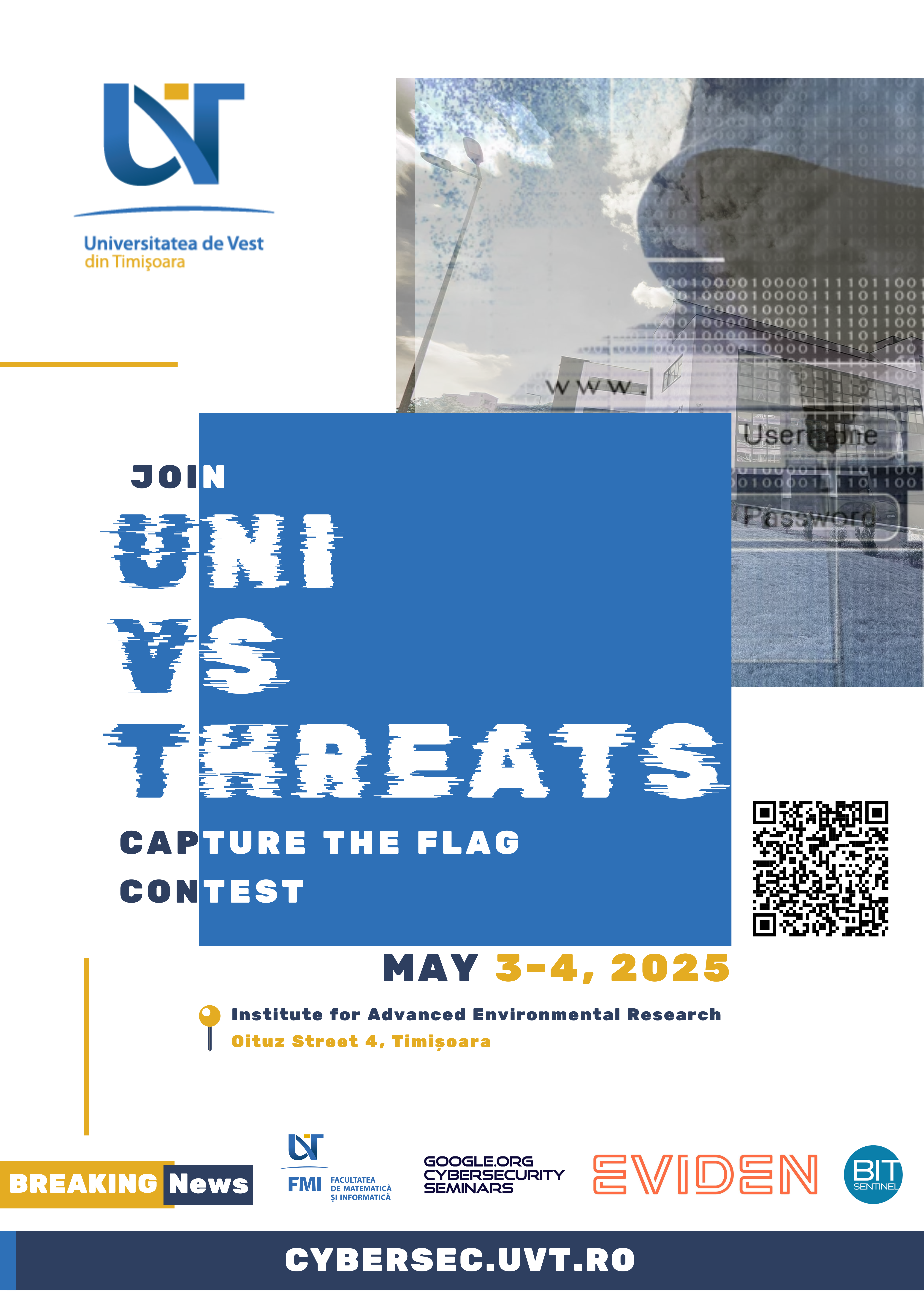 UniVsThreats CTF is an engaging cybersecurity competition organized by the West University of Timișoara (UVT), proudly entering its second edition!